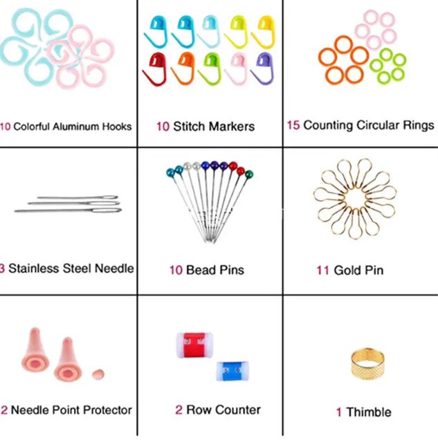 A crochet hook kit is a comprehensive collection of tools and accessories that are essential for the craft of crocheting. It is designed to provide crocheters, both beginners and experienced, with everything they need in one convenient package. A typical crochet hook kit includes a range of crochet hooks in different sizes, stitch markers, yarn needles, measuring tape, and other useful items.