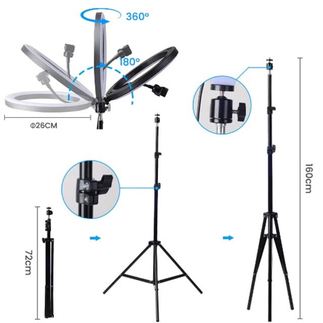 This Ring Light is suitable for outdoor photo light, filling light indoors, portrait, fashion, wedding, art, advertisement, photography video shoot and lots more.