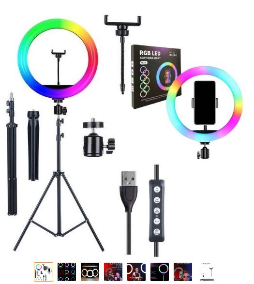• Packing & Service – 1 x 18″ LED rgb Ring Light, 1 x Tripod Stand, 3 x Rotatable Phone Holder, 1 x IR Remote Control x Bluetooth