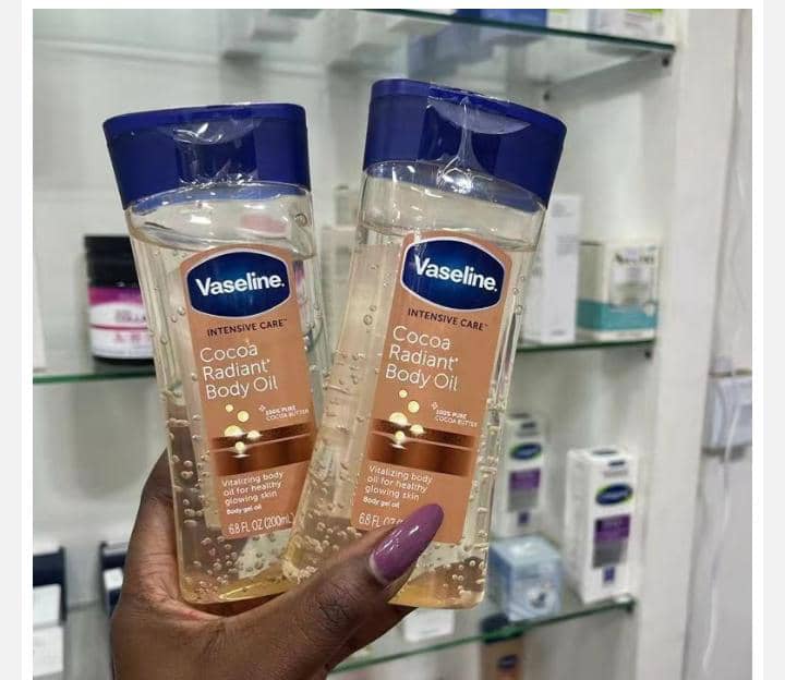 • Body oil contains microdroplets of Vaseline Jelly to lock in moisture
