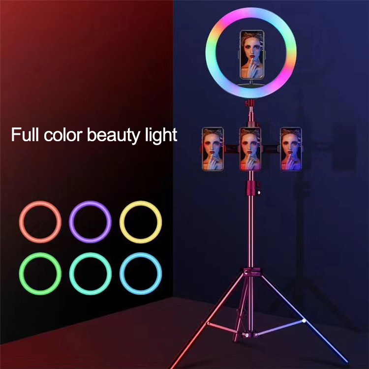 The RGB ring light depending on the size can come with one – three phone holders. The smaller RGB ring lights comes with just one phone holders while the bigger ring lights comes with three phone holders.