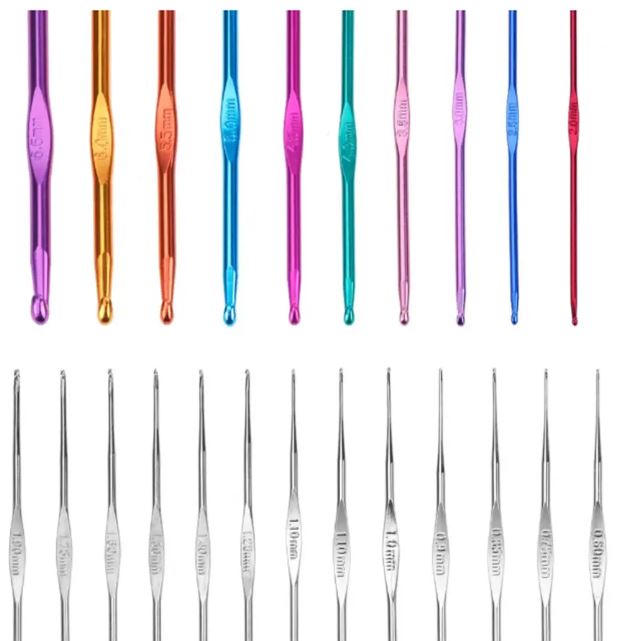 - Crochet Hooks: The main component of a crochet hook kit is, of course, the crochet hooks themselves. These hooks come in different sizes, each suited for specific yarn weights and project requirements. Commonly included sizes range from smaller hooks (such as 2.5mm or B/1) for fine yarns to larger hooks (such as 6.5mm or K/10.5) for bulkier projects.